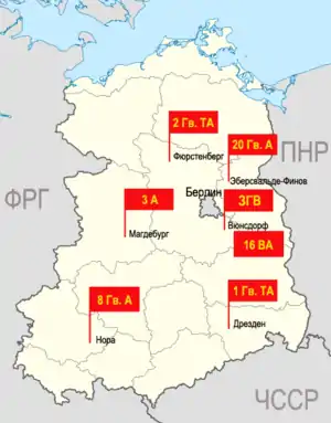 | Group of Soviet Occupation Forces in Germany (1945–54) Group of Soviet Forces in Germany (1954–88) Western Group of Forces (1988–94) | |