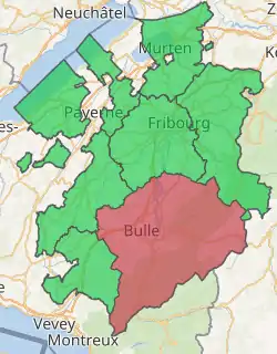 Gruyère (French: District de la Gruyère French pronunciation: [distχi dœ la gʁɥiˈjɛʁ]) is one of seven districts of the canton of Fribourg in Switzerland. It has a population of 56,622 (as of 31 December 2019). Its capital is Bulle.