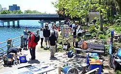 Whereas most areas that are subjected to guerrilla gardening are unused or abandoned areas not designated for parkland or green space, this is an exception in that it was initially designed for such a purpose. Originally a maintained parkette in Welland, this small area along the Welland Recreational Waterway fell into disuse and neglect for a number of years. In 2013, a handful of local residents, including visual artists and guerrilla gardeners, reclaimed the space by fully restoring overgrown flower beds, adding outdoor paintings, and overseeing general landscape maintenance. Although this area is officially municipal property, there was initially a question by volunteers as to which local organization was responsible for this parkette's maintenance (whether responsibility fell into hands of Welland Recreational Canal Corporation or City of Welland Parks Department). Volunteers met with representatives of City of Welland, and an unofficial verbal agreement was made, ensuring that although the City of Welland does own the parkette land, volunteers may continue maintenance and gardening in the area. Currently, the area does attract some local artistic, musical, and creative youth. It has also been the setting for a number of small unorganized or impromptu events, such as art shows.[19][20][21]