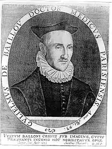 Guillaume de Baillou (Latin: Ballonius) (1538–1616) was a French physician born in Paris. He was a member of the Baillou family, one of the oldest aristocratic families in Europe.