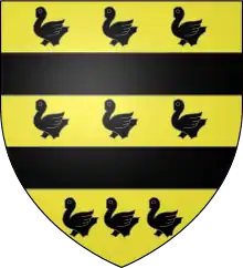 Blazon: D'or, à deux fasces de sable, accompagné de neuf merlettes du même (3, 3 et 3)