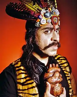 Gómez-Peña traveled internationally for two years with fellow artist Coco Fusco performing The Year of the White Bear and Two Undiscovered Amerindians Visit the West (1992–1994), a satirical performance piece in which the two artists were exhibited in a cage in museums and at arts festivals as "authentic" Amerindians from a previously undiscovered island off the Mexican coast.[9] The pair dressed up in a hodgepodge of ethnic drag and bits of Americana such as a baseball cap and grass skirt in the case of Fusco, and face paint and a leopard-skin wrestling mask for Gómez-Peña. Coco Fusco described the piece as "a satirical commentary both on the Quincentenary celebrations and on the history of this practice of exhibiting human beings from Africa, Asia, and Latin America in Europe and the United States in zoos, theaters, and museums."[9] During its run, the critically acclaimed piece was performed at major museums and arts festivals in New York, Washington, DC, Los Angeles, Chicago and Madrid, Spain, amongst others.