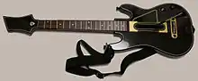 Though FreeStyleGames experimented with other options including a controller-less game, camera and motion detection, and social-based games, but recognized quickly that the guitar controller was a key part of the series' success.[37] The developers recognized they wanted to have a guitar controller that players would not be embarrassed to have in their living rooms and spent time getting the look of the controller accurate to a real guitar.[37] The design of the game's guitar controller was overhauled, using rapid prototyping to test potential guitar designs.[6] The final design of the controller for Live utilizes a new design with six buttons arranged into two rows of three frets, designated by black and white-colored notes in-game, instead of using the traditional row of five colored frets used by previous Guitar Hero games. Jackson explained that the new layout was meant to make the game easier for new players, as the three-button layout avoids the need to use one's pinkie finger, a difficulty they recognized new players had on the traditional five-button controller.[36] The layout was also designed to provide a new challenge to experienced players, including more realistic simulations of chords.[4][5] The choice to use only three buttons also came from statistical analysis of past games, where about 80% of the players would never play harder than the Medium difficulty level which typically only required the use of three fingers with the previous five-button controllers.[37] The initial controller iterations, presented both in-studio and to Activision, were met with skepticism but they found that players quickly adapted to the new scheme as an improvement over the older controllers.[37] The "note highways" for the songs were created by both programmers and musicians using MIDI software as to map to each of the six controller buttons and the open strum bar. Note highways were developed first for the Expert difficulty level, essentially recreating the guitar part of the song note for note, while highways for lower difficulty levels were then constructed by removing notes while assuring the core rhythm of the song remained.[6]
