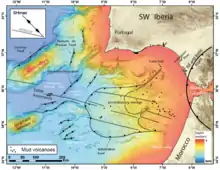 The geological history of the Gulf of Cadiz is intimately related to plate tectonic interaction between Southern Eurasia and North Africa and is driven by two major mechanisms:[2]