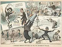 Though gun control is not strictly a partisan issue, there is generally more support for gun control legislation in the Democratic Party than in the Republican Party.[39] The Libertarian Party, whose campaign platforms favor limited government regulation, is outspokenly against gun control.[40]