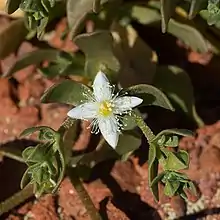 Gunniopsis papillata, commonly known as the twin-leaved pigface,[2] is a species of succulent plant in the iceplant family, Aizoaceae and is endemic to inland areas of Australia. It is an annual herb with pimply, spatula-shaped to egg-shaped leaves and flowers with white or yellow petals.