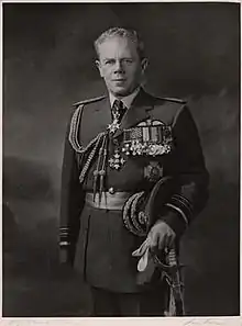 He joined the Royal Air Force from university on 29 March 1933.[2] In November 1940 during the Second World War he was appointed Officer Commanding No. 50 Squadron in which role he earned the Distinguished Service Order and Distinguished Flying Cross before moving on to become Station Commander at RAF Syerston in April 1942.[2] While working as station commander at RAF Syerston he rushed in a fire truck from the control tower to a taxiing Lancaster bomber when he saw it was on fire. He then tried to remove incendiary bombs from under the bomb bay in the hope that he could prevent a 4,000-pound (1,800 kg) bomb from exploding, but it detonated and he lost his right arm as a result.[2] Returning to active service with an artificial arm, he was referred to by personnel as the one-armed bandit.[3] In February 1945 he was appointed Senior Air Staff Officer at Headquarters No. 4 Group and went on to receive the Croix de Guerre and Légion d'Honneur.[1]