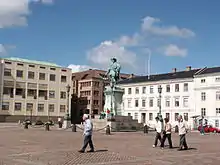 Gustaf Adolfs torg ("Gustaf Adolf's square") is a town square located in central Gothenburg, Sweden. It was named Stortorget (the Big Square) until 1854 when a statue of the founding father of Gothenburg, king Gustavus Adolphus of Sweden was raised. Surrounding the square are the city hall, including the law court extension (by Gunnar Asplund), the bourse, and the main harbour canal of Gothenburg.