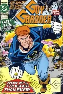 Guy Gardner is a fictional comic book superhero appearing in books published by DC Comics, usually in books featuring the Green Lantern family of characters, and for a time (late 1980s through mid 1990s) was also a significant member of the Justice League family of characters. He usually appears in books featuring the Green Lantern Corps, an intergalactic police force in which Gardner has usually been depicted as a member.[1] Gardner's original design was based on actor Martin Milner.[2]