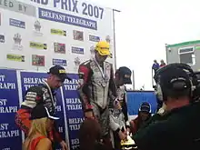 Martin is not comfortable with being a public figure and rejects any notion that he is a celebrity, turning down offers such as Top Gear's Star In A Reasonably Priced Car segment.[14] After struggling to come to terms with the fame brought about by his media work, Martin was diagnosed with Asperger syndrome.[7] About his psychiatrist's findings, he says "It hasn't changed anything, it just confirms why I do certain things in a certain way."[16] As a result of his BBC work, he had begun to be recognized by non-racing fans even before the release of the TT3D film.[15] He would be quite happy if nobody watched his shows, as it would mean he would never get recognized.[16] While not wanting to seem unappreciative of the public's support, he tries to cope with fame by avoiding crowded situations.[14] He prefers to live out of his van while racing or on television shoots.[4]