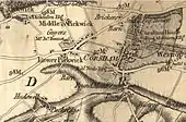 The first residents of the house were the Snelling family who built a small farmhouse. In 1678 they sold it to Edward Bayley who transformed it into a very substantial building. A sketch of this house is shown. Edward was a member of the Quakers who were very prominent in Pickwick at this time and he is listed in the Quaker burials.[2] Sometime after his death in 1707 it was sold to the Bennett family. The most likely Bennett would be Thomas Bennett who opened a Quaker Boarding School in Pickwick in about 1725.[3] After Thomas died in 1764 his son John Bennett took over teaching at the school. A map of 1773 (shown at left) shows that John Bennett owns a property called Guyers at this time. John died in 1802 and by 1813 Thomas Pycroft (1774-1849) owned the house.[4]