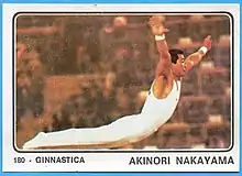 The men's rings competition was one of eight events for male competitors in artistic gymnastics at the 1972 Summer Olympics in Munich. The qualification and final rounds took place on August 27, 29 and September 1 at the Olympiahalle. There were 111 competitors from 26 nations (with 2 of the 113 gymnasts not starting in this apparatus); nations entering the team event had 6 gymnasts while other nations could have up to 3 gymnasts.[1] The top two places were the same as in 1968, while the next two places were taken by the same gymnasts but in the opposite order. The event was won by Akinori Nakayama of Japan, the nation's third consecutive victory in the men's rings; Nakayama was the second man to successfully defend an Olympic title in the event. Mikhail Voronin's second consecutive silver extended the Soviet Union's podium streak in the rings to six Games. Nakayama and Voronin were the fifth and sixth men to earn multiple medals in the rings. Mitsuo Tsukahara of Japan took bronze, switching places with fourth-place finisher Sawao Kato from the previous Games (where Kato took bronze and Tsukahara fourth).