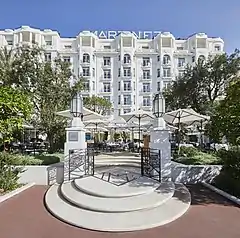 The hotel was sold in 2012 and joined the Hyatt Group on April 9, 2013 and was renamed the Grand Hyatt Cannes Hotel Martinez.[3] The hotel closed for renovations on October 30, 2017 and reopened for business on March 5, 2018 under its original name, as part of The Unbound Collection by Hyatt division.[4] It celebrated its grand reopening on May 7, 2018.[5] The renovations were made by the interior designer Pierre-Yves Rochon, the decor mix Art Deco style and modern luxury. [6]