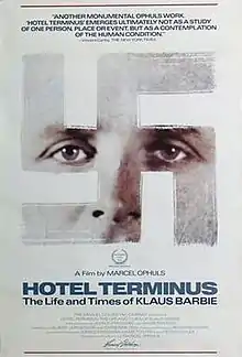 Hôtel Terminus: The Life and Times of Klaus Barbie (French: Hôtel Terminus: Klaus Barbie, sa vie et son temps) is a 1988 American documentary film directed by Marcel Ophuls about the life of Nazi war criminal Klaus Barbie. The film covers Barbie's relatively innocent childhood, his time with the Gestapo in Lyon (where he apparently excelled at torture), through to the forty years between the end of World War II and his eventual deportation from Bolivia to stand trial for crimes against humanity in France. The film explores a number of themes, including the nature of evil and the diffusion of responsibility in hierarchical situations.[2]
