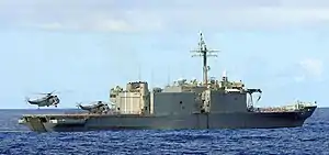 Following an overhaul of the RAN battle honour system completed in early 2010, Kanimbla was also granted the battle honours "Persian Gulf 2001–2003" and "Iraq 2003".[31][32] During July and August 2010, Kanimbla was one of three RAN ships to participate in the RIMPAC 2010 multinational exercise.[33]