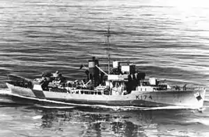 Flower-class corvettes like Trail serving with the Royal Canadian Navy during the Second World War were different from earlier and more traditional sail-driven corvettes.[4][5][6] The "corvette" designation was created by the French for classes of small warships; the Royal Navy borrowed the term for a period but discontinued its use in 1877.[7] During the hurried preparations for war in the late 1930s, Winston Churchill reactivated the corvette class, needing a name for smaller ships used in an escort capacity, in this case based on a whaling ship design.[8] The generic name "flower" was used to designate the class of these ships, which – in the Royal Navy – were named after flowering plants.[9]