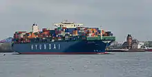 HMM (Hangul: 에이치엠엠) is the world's 8th largest container line in terms of vessel capacity. HMM moves the largest portion of South Korea's exports,[1] becoming the number one Korean national containers carrier, especially since Hanjin Shipping was declared bankrupt and ordered to be liquidated.[2] As of 2020, HMM has built and launched the worlds two largest container ships in terms of TEU capacity, the HMM Algeciras with a maximum TEU capacity of 23,964, and the HMM Copenhagen with a maximum capacity of 23,820 TEU.[3]