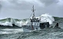 In August 2017, the replacement for HMS Gleaner, the Royal Navy's existing inshore survey launch, was announced to be one of a total of 38 multi-role workboats of various sizes being constructed to undertake various duties. The main structure of the vessel was constructed by Safehaven Marine, a boatbuilding company based in Cork.[4] In February 2018, it was announced that the ship would be named HMS Magpie.[5] The type selected for the inshore survey vessel was based on Safehaven's Wildcat 60 catamaran design, the largest available at 18m in length, and with a displacement of 37 tonnes. Magpie was built to accommodate a crew of 12 for up to seven days, with the capability of operating in all weathers. Following completion and initial trials by Safehaven Marine, Magpie was subsequently delivered to Atlas Elektronik UK (AEUK) for installation of its mission equipment. In April 2018, Magpie underwent further trials with its mission equipment installed,[2] before final delivery of the vessel to the Royal Navy in May 2018 for commissioning in early summer.[6]