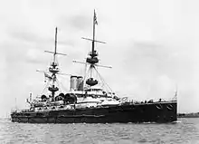 HMS Mars was laid down at the Laird Brothers shipyard in Birkenhead on 2 June 1894. She was launched on 30 March 1896.[2] She commissioned on 8 June 1897 for service with the Channel Fleet, where she served in the Portsmouth division. She was present at the Fleet Review at Spithead for the Diamond Jubilee of Queen Victoria on 26 June 1897.[3] Captain Henry John May was appointed in command on 5 January 1899, and succeeded by Captain Henry Deacon Barry who was appointed in command in September 1900. She took part in the Coronation Fleet Review for King Edward VII on 16 August 1902,[4][3] and the following two months she was part of a squadron visiting Nauplia and Souda Bay at Crete for combined manoeuvres between the Channel and Mediterranean fleets.[5] On 16 August 1904, Mars began a refit at Portsmouth. During her refit, the Channel Fleet became the Atlantic Fleet in a reorganization on 1 January 1905, and she remained in the renamed unit. Her refit was completed in March 1905. Her Atlantic Fleet service ended on 31 March 1906, when she commissioned into the Reserve at Portsmouth.[3]
