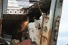 She was sold to Pounds of Portsmouth in 2002, arriving there to be scrapped on 10 December 2002. She was offered for preservation between 2004 and 2005, but it was confirmed in January 2006 that she would be broken up. After further discussions with heritage and preservation groups, in 2008 her bow doors were removed[2] and in 2010 she was broken up at Pounds scrap yard, a process recorded by National Historic Ships.[4]