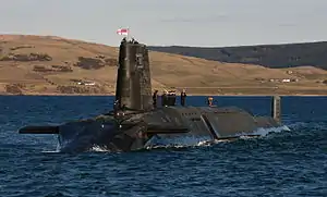 HMS Victorious is the second Vanguard-class submarine of the Royal Navy.[1] Victorious carries the Trident ballistic missile,[2] the UK's nuclear deterrent.