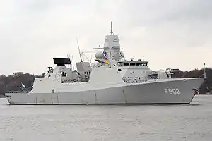 HNLMS De Zeven Provinciën (F802) is the first ship of the De Zeven Provinciën-class air defence and command frigates in service with the Royal Netherlands Navy (RNLN). There are three other ships in this class, HNLMS Tromp (F803), HNLMS De Ruyter (F804), and HNLMS Evertsen (F805).
