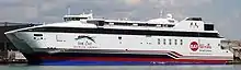The HSC Virgen de Coromoto is an 86 m (282 ft) fast catamaran ferry operated by Consolidada de Ferrys C.A. in Venezuela. It was built in Australia for a fast ferry service on Lake Ontario between Toronto, Ontario, Canada and Rochester, New York, United States. After the ferry service failed, the boat was sold in 2007 and operated in the Strait of Gibraltar. From 2007–2012, the boat operated in Morocco on a Spain–Morocco service. In 2012–13, the ship operated on Kattegatruten's Aarhus–Kalundborg route in Denmark until October 2013 when the route was cancelled.