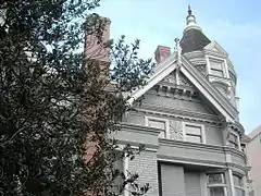 The house was built in the Victorian Queen Anne - Eastlake style.[9][10] Built of redwood,[11] the building follows the locally popular row-house plan, developed to maximise the use of space in deep, narrow hillside lots.[9]