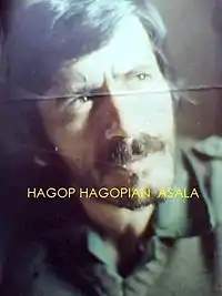Born in Mosul, Iraq as Harutiun Takoshian, he took the nom de guerre Hagop Hagopian,[1][2] and moved to Lebanon, where according to some sources he joined the Popular Front for the Liberation of Palestine.[3] In 1975, alongside with writer Kevork Ajemian and others, and with the support from Palestinian groups, he founded in Beirut the ASALA.[4] As leader of ASALA, he directed attacks and assassinations of Turkish diplomats and their families in various countries of the world.