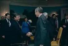 Barbour soon became prominent within the Republican party running Gerald Ford's 1976 presidential campaign in the Southeast. He also worked on the campaign of former Texas Governor John Connally, who had become a Republican, for president in 1980.[11] In 1982 Barbour was the Republican nominee for the U.S. Senate election in Mississippi, but was defeated by longtime incumbent John C. Stennis, a conservative Democrat, 64% to 36%, despite an endorsement by President Ronald Reagan.[12] During the campaign, The New York Times reported that a Barbour aide complained about "coons" at a campaign event. Barbour, embarrassed that the comment was overheard by a reporter, told the aide that he would be "reincarnated as a watermelon and placed at the mercy of blacks" if he continued making racist comments.[13]