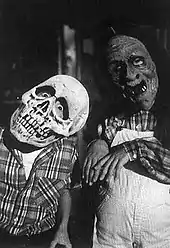 Special effects artist Don Post of Post Studios designed the latex masks in the film which included a glow-in-the-dark skull, a lime-green witch and an orange Day-Glo jack-o'-lantern.[7] Hill told Aljean Harmetz, "We didn't exactly have a whole lot of money for things like props, so we asked Post, who had provided The Shape mask for the earlier 'Halloween' [II] ... , if we could work out a deal."[8] The skull and witch masks were adaptations of standard Post Studios masks, but the jack-o'-lantern was created specifically for Halloween III. Post linked the masks of the film to the popularity of masks in the real world: