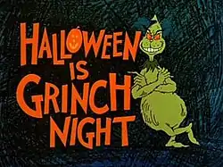 Halloween Is Grinch Night (titled It's Grinch Night for the 1992 videocassette release and Grinch Night for the sing-a-long videocassette release) is a 1977 children's animated Halloween television special and is the prequel to the 1966 television special How the Grinch Stole Christmas! It premiered on ABC on October 28, 1977.[2] The original voice actor for the Grinch, Boris Karloff, by then deceased, was replaced by Hans Conried, though Thurl Ravenscroft, who sang on the original special, again provided singing vocals. The songs and score were written by Sesame Street composer Joe Raposo.[3]