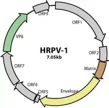 Halorubrum pleomorphic virus 1 (HRPV-1) is a single stranded DNA virus that infects the species of the archaeal genus Halorubrum.[1] It is unlike any other known virus infecting the archaea with a single stranded DNA genome and an external lipid envelope and is classified in the family Pleolipoviridae, genus Alphapleolipovirus, species Halorubrum virus HRPV1.[2]