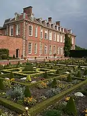 George London designed the original formal gardens in 1705, heavily influenced by the gardens of Het Loo Palace and the Palace of Versailles. At the end of the 18th century they were removed, to be replaced by open spaces.[5]