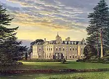 The main house is in the Queen Anne style, and has two stories plus an attic. It has red Flemish bond ashlar brickwork, with a tiled hipped roof, and large brick chimney stacks. The main house was listed by English Heritage on 29 December 1952, and is a Grade I listed building.[3]