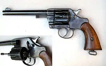 The Colt Single Action Army, also known as the Single Action Army, SAA, Model P, Peacemaker, M1873, and Colt .45 is a single-action revolver with a revolving cylinder holding six metallic cartridges. It was designed for the U.S. government service revolver trials of 1872 by Colt's Patent Firearms Manufacturing Company — today's Colt's Manufacturing Company — and was adopted as the standard military service revolver until 1892. The Colt SAA has been offered in over 30 different calibers and various barrel lengths. Its overall appearance has remained consistent since 1873. Colt has discontinued its production twice, but brought it back due to popular demand. The revolver was popular with ranchers, lawmen, and outlaws alike, but as of the early 21st century, models are mostly bought by collectors and Cowboy Action Shooters. Its design has influenced the production of numerous other models from other companies. The Colt SAA "Peacemaker" revolver is a famous piece of Americana known as "The Gun That Won the West".[20][21][22]