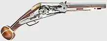 A flintlock is a general term for any firearm that uses a flint striking ignition mechanism. The term may also apply to a particular form of the mechanism itself, that was introduced in the early 17th century, and rapidly replaced earlier firearm-ignition technologies, such as the matchlock and the wheellock.