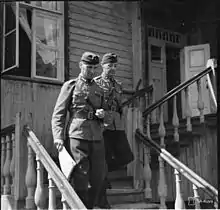 ![]() Hannuksela with his staff on the Karelian Isthmus, January 1942 | |