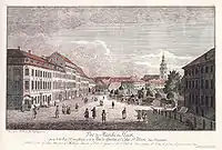 In 1750, to facilitate expansion of Berlin, the King ordered the city's fortifications and the Spandau Gate to be torn down. Under Hacke's leadership, new houses and streets were built on what had previously been swamp land, and a spacious square was set out here. As a sign of his absolute satisfaction with the work, and in recognition of Hacke's services, the King commanded the square to be named the Hackescher Markt.