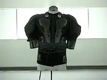 A haptic suit (also known as tactile suit, gaming suit or haptic vest) is a wearable device that provides haptic feedback to the body.