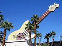 The Hard Rock Cafe closed on December 31, 2016, as Hard Rock International wanted to focus efforts on its newer location at the nearby Showcase Mall.[164] The café sat vacant for several years,[8] and its Gibson Les Paul guitar sign was disassembled in October 2017.[185] YESCO had built the sign and rented it to Hard Rock International while the restaurant was in operation.[186] The sign was refurbished and put on display at the city's Neon Museum in 2019.[187][9]