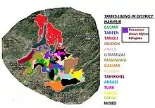 The city lies on the Karakoram Highway (N35). Many castes and tribes live in Haripur including some of the Hindko Speaking Pashtun Tribes {Jadoon, Tareen, Tanoli, Utmanzai, Panni, Musa Khail , Dilazak} and other castes Include Douli Mughal, Abbasi, Gujjar , Awan, mashwanis and Gakhars.The major caste dominant in the region is Awans they are dominant in haripur both in urban and rural areas.