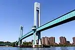 The Harlem River is spanned by seven swing bridges, three lift bridges, and four arch bridges,[7] and is navigable to any boat with less than 55 feet (16.8 m) of air draft. However, any boat requiring more than 5 feet (1.5 m) of clearance will require the Spuyten Duyvil Bridge to swing open. All other movable bridges on the Harlem River provide at least 24 feet (7.3 m) of clearance while closed, so boats and ships requiring between 5 and 24 feet (1.5 and 7.3 m) of clearance need only have one bridge swing open. These bridges replaced fixed bridges or lower bridges in the late 19th century to improve navigation. High Bridge was erected between 1837 and 1848 to carry the Croton Aqueduct across the river. It is the oldest bridge in New York City.