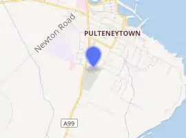 On the south approach road to the town along the A99, Harmsworth Park is located on the right upon entering Wick.[4][10]