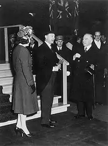 In March 1937, Alexander was appointed as one of the aides-de-camp to the recently acceded King George VI and in May returned to the United Kingdom to take part in this capacity in the state procession through London during the King's coronation.[39][40] Alexander would have been seen in this event by two of his Canadian viceregal successors: Vincent Massey, who was then the Canadian high commissioner to the United Kingdom, and Massey's secretary, Georges Vanier, who watched the procession from the roof of Canada House on Trafalgar Square.[41] Following the coronation celebration, Alexander returned to India, where he was made the honorary colonel of the 3rd Battalion, 2nd Punjab Regiment,[42] and then in October 1937 was promoted to the rank of major-general,[43] making Alexander the youngest general in the British Army.[14] He relinquished command of his brigade in January 1938,[44] and in February returned to the United Kingdom to take command of the 1st Infantry Division.[45] In June 1938 he was appointed a Companion of the Order of the Bath.[46]