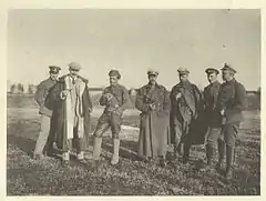 On 10 December 1916, his twenty-fifth birthday, Alexander became second-in-command (2-i-c) of the 1st Battalion, Irish Guards, as an acting major.[10] By May, he was briefly acting CO of the 1st Battalion,[10] as an acting lieutenant colonel, while still only a substantive captain.[15][16] He became a permanent major on 1 August 1917,[17] and was again promoted acting lieutenant colonel,[10] this time confirmed as CO of the 2nd Battalion, Irish Guards, on 15 October.[18] Alexander commanded his battalion at Third Ypres, where he was slightly wounded, then at Bourlon Wood (part of the battle of Cambrai), where his battalion suffered 320 casualties out of 400 men.[10] Alexander, between 23 and 30 March 1918, had to assume command of the 4th Guards Brigade, during the British retreat from the German Army's Spring Offensive.[10][19] He once again commanded the 2nd Battalion, Irish Guards, at Hazebrouck in April 1918, where it took such severe casualties that it saw no further action.[10] Still an acting lieutenant colonel, he then commanded a corps infantry school in October 1918, a month before the war ended on 11 November 1918.[20]