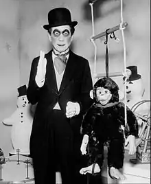 Arthur "Harpo" Marx (born Adolph Marx;[2] November 23, 1888 – September 28, 1964) was an American comedian, actor, mime artist,[3] and musician, and the second-oldest of the Marx Brothers.[2] In contrast to the mainly verbal comedy of his brothers Groucho Marx and Chico Marx, Harpo's comic style was visual, being an example of both clown and pantomime traditions. He wore a curly reddish blond wig and was silent in all his movie appearances,[4] instead blowing a horn[5] or whistling[6] to communicate. Marx frequently employed props[7] such as a horn cane, constructed from a lead pipe, tape, and a bulbhorn.[8]