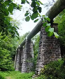 An aqueduct for Bristol water supply follows the line of the combe. It was completed in 1851, with John Simpson acting as the chief engineer, and it is still in use today. It consists of a wrought iron tube, which runs underground for 18 kilometres (11 mi), to Bristol Reservoirs but where it appears above ground it is supported by limestone piers and abutments. It is probably the oldest surviving example of such engineering and has been designated by English Heritage as a grade II listed building.[6]