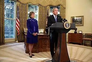 Miers is said to be one of Bush's closest personal friends and appears given to effusive praise for the President. According to former Bush speechwriter David Frum, Miers has called Bush the most brilliant man she had ever met[20] and says he was the "best Governor ever."[21] She also stated that "serving President Bush and Mrs. Bush is an impossible-to-describe privilege" and noted that Bush's personal qualities "make a brighter future for our nation and people all around the world possible."[22]