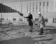 In April 1973, the Architect of the Capitol awarded the architectural design contract to John Carl Warnecke, a nationally prominent architect working in the District of Columbia who had helped save Lafayette Square and designed the John F. Kennedy grave site.[5] Warnecke's design for the building was approved by the Senate Committee on Public Works on August 8, 1974.[6] Warnecke was given just two weeks to come up with the cost estimate, which the Architect of the Capitol later claimed was far too little time to generate an accurate cost forecast.[7][8] By the end of the year, the estimated cost of construction had risen to $69 million.[8]